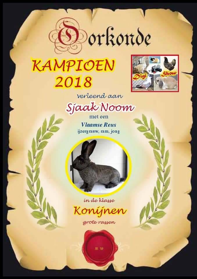 De tentoonstellingen zijn nagenoeg achter de rug en we gaan ons zo langzamerhand opmaken voor de fokkerij van seizoen 2026. Op dit moment, 1 december 2025 heb ik een drietal Vlaamse reuzen beschikbaar voor de verkoop. De dieren hebben een goed showseizoen gehad doch zijn voor de verkoop beschikbaar.
